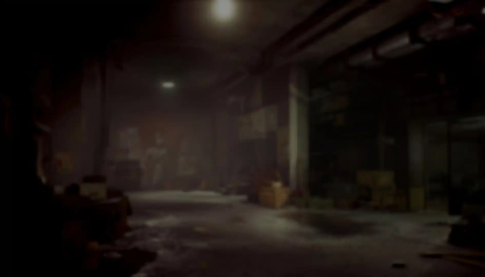 虽然这些图片主要展示的是用户界面设计,但我们也能从中窥见一丝游戏内场景。尽管它只是某个菜单的模糊背景,但从中可以辨认出,这似乎是一个光线昏暗的安全屋,里面堆放着板条箱和盒子。考虑到它出现在招募菜单的后面,这强烈暗示着该地点可能曾是玩家的主要枢纽或兴趣点。