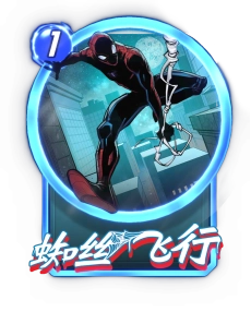 规则:卡组内的每一位蜘蛛侠移动后,+5战力。回合结束:随机移动两张牌