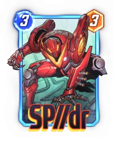 [2/1] 揭示:添加SP//dr到你的手牌。当此牌合并时,将1张随机蜘蛛侠添加进手牌,使该牌能量消耗-3。