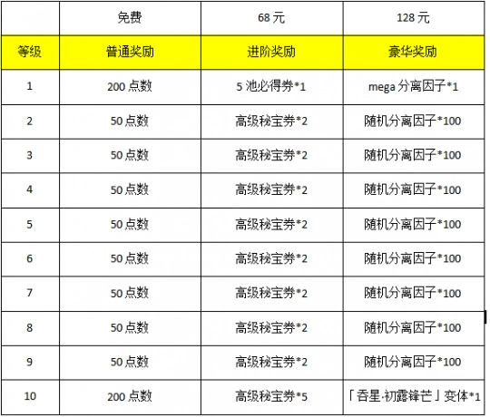 完成通行证任务提升通行证等级,解锁【星尘徽章】和【高级星空币】等奖励,若您选择购买通行证,更能解锁 Mega 分离因子、战场背景等专属奖励。