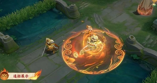 技能特效整体融合瓦猫吞邪的威严造型与国风祥云元素,搭配火焰炸裂时迸发的辟邪金光,尽显镇宅神兽的威严与治愈感。