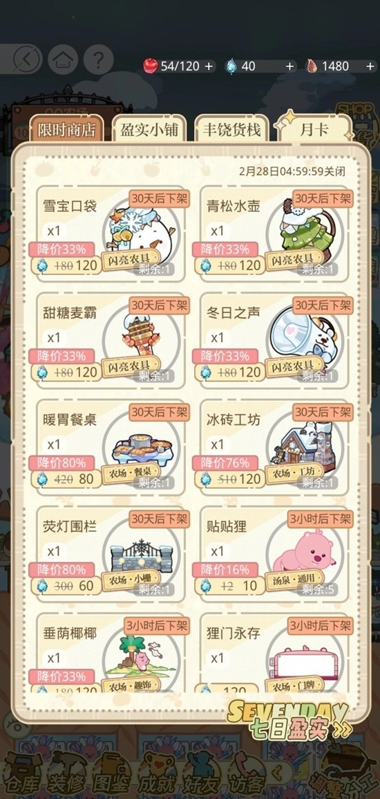 限定农具:百货 120雨露/件,购物3区礼包-联动农场 4北极星/件