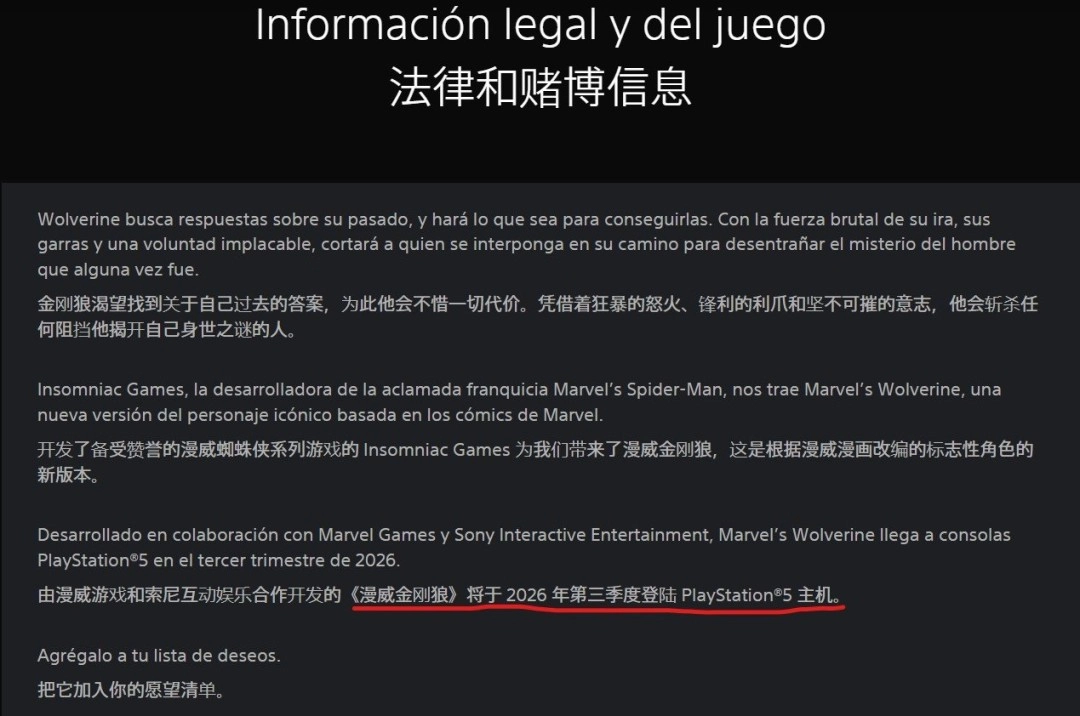 根据拉丁美洲PlayStation商店页面的信息显示,失眠组(Insomniac Games)旗下即将推出的PlayStation独占游戏《漫威金刚狼》,其发售时间可能定在2026年第三季度。这一消息让此前官方公布的“2026年秋季”发售窗口范围得到了进一步缩小。