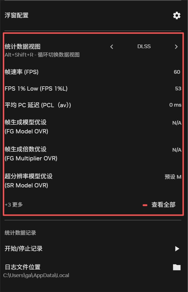 将统计数据视图切换至DLSS,下方的超分辨率模型优设显示为预设M即为成功开启