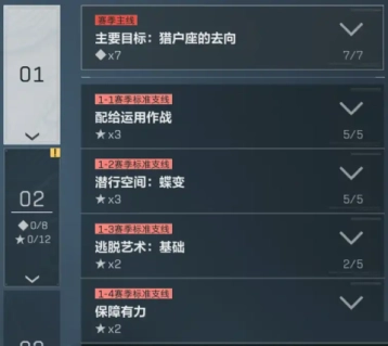 1.三角洲s8赛季3x3第一阶段主线任务【猎户去向】:包含7个任务,共7★