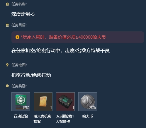 在任意机密/绝密行动中,成功撤离1次(收益≥300000哈夫币);