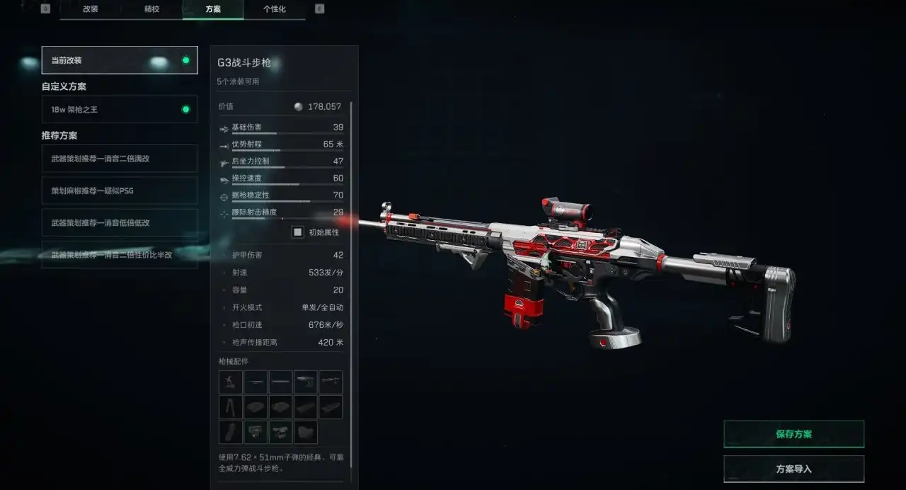 三角洲G3作为一款战斗步枪,其射速为533发/分,相较于M250要慢一些。那么如何对三角洲G3进行改装以提升性能呢?本期内容将为大家带来三角洲G3的改装方案,分享其最佳改装配置以及对应的改枪码。希望通过这些改装方案的调整,能让G3在保留自身特色的基础上,实现性能的全方位优化!