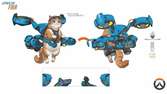 飞天猫是玩家期待最久的新英雄。2017年GameSpot采访中,时任总监杰夫·卡普兰曾透露,暴雪早有猫咪喷气背包英雄的想法,后因觉得离谱而放弃。