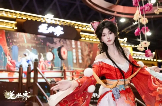 在前不久举办的2025东京电玩展上,《逆水寒》手游不仅复刻了游戏场景【汴京戏台】,还将黑瓦、飞檐、窗饰、灯笼等富有中国传统建筑风格的元素融入其中,让现场观众饱览国风韵味。20多位靓丽COSER身着国风服饰,摇曳着曼妙的身姿,或是与人互动拍摄,或是展示角色招牌动作,再加上元气满满的血河小狗,整个展台都变成欢乐的海洋。