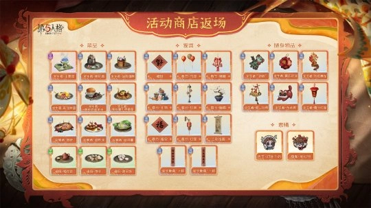 春节时装返场也于1月29日已重返窥镜商店和商城,其中有【稀世时装】牛仔-谪仙、【稀世时装】渔女-瑶彩、【稀世时装】鹿头-闻雷爪、【稀世时装】杂技演员-祈雨珠、【稀世时装】宿伞之魂-寒霜及配套随身物品和往年春节活动奖励时装、个性动作、菜品、家具、随身物品等道具,时间有限,请访客们千万不要错过!