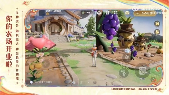 在直播中,《王者荣耀》首次曝光了农场玩法,玩家能在王者世界里体验“干农活”的乐趣,不仅可以进行播种、浇水、收获等操作,还能去好友的农场“串门”互动。该玩法提供了数十种作物供玩家种植,支持自由转动视角等操作,后续预计还会推出升级田地、作物变异等玩法。此外,部分作物带有英雄特征,比如外形酷似马可波罗的“马可菠萝”,以及像小乔扇子的作物等。