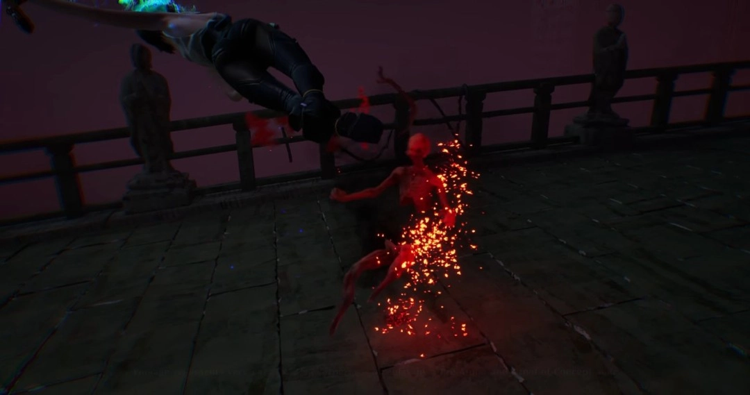 SUZAKU Games在谈及创作理念时直言,他们认为“现代恐怖游戏不够性感”,而《Surangama》试图打破这一现状。游戏以激进战斗为核心,强调连招执行与精准操作,刻意规避防守龟缩的玩法风格。开发团队明确表示,本作灵感源自《忍者龙剑传:黑之章》与《鬼武者2》,注重基于时机的输入与操作表现,而非角色等级成长系统。