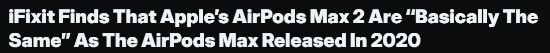 最终,iFixit对AirPods Max 2的可修复性评分仅给出6分(满分10分)。简单概括就是:六年等待换来的只是芯片更新,之前存在的老问题一个都没解决。