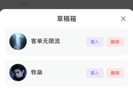 7、草稿箱里有编辑中的角色,载入后可以继续编辑,如果完全不需要了则需要手动删除