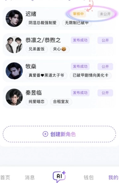 1. 开启青丘语后进入AI界面,点击下方的【创建新角色】