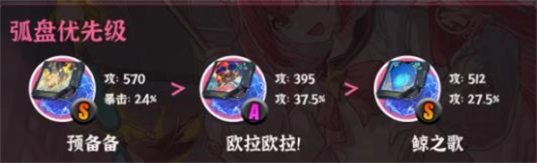 2、弧盘,也就是游戏中角色的武器,优先携带专武预备备,其次考虑A级弧盘欧拉欧拉,其余弧盘应该无法吃满效果,主要看攻击力加成,鲸之歌/焰魂狂飙/不屈之绵都可以考虑。