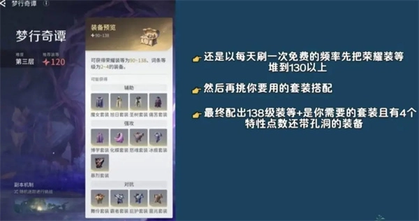 3、第三层:当前核心刷装副本,每天打1次免费场次,先把装等堆到130级以上,再慢慢搭配套装。