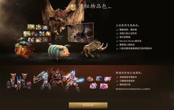 本次联动的基础款除了雕像宠物那个猪以外都是可以通过正常对局获得材料,但是基础款的升级解锁款式需要103元购入远征包解锁才能进行升级