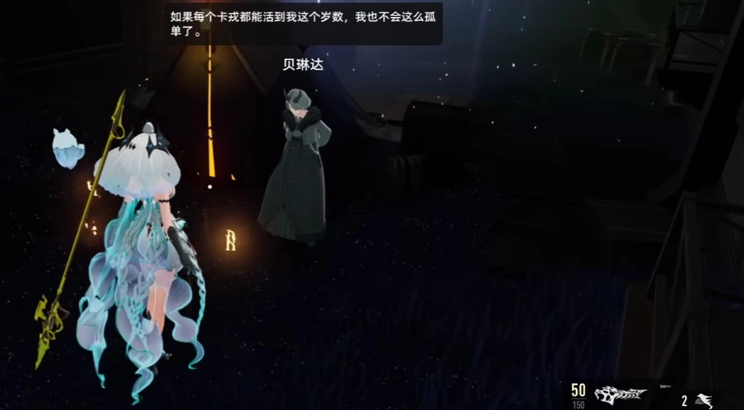值得一提的是,在铁丝任务之前,玩家需要率先和一名为“贝琳达”的NPC对话,该NPC位于矿洞周围,作为卡戎之民的一员,他对于生或死的认知是与众不同的,在和其对话的过程当中,玩家会进行一次选项的判定,这里建议玩家直接选择“贝琳达似乎意有所指”即可。