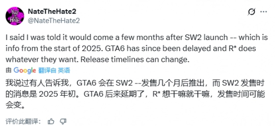 需要留意的是,近期,业内颇具知名度的爆料人NateTheHate披露,《荒野大镖客:救赎2》的“增强版”依旧处于开发进程当中。对于RDR1重制版的发布,他在社交媒体上回应表示:“这对RDR2项目的推进并无影响”。当被询问具体的发售时间时,他进一步说明:“之前所获取的消息是打算在Switch 2发售几个月后推出——这是2025年初得到的信息”,并且指出随着《GTA6》的延期,Rockstar“在发布计划上拥有十足的自主权,时间表随时都有可能调整”。