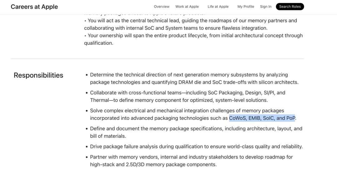 高通和苹果公司最新发布的招聘信息显示,两家公司都在寻求精通英特尔EMIB先进封装技术的人才。这家位于库比蒂诺的科技巨头正在招聘一名DRAM封装工程师,要求应聘者具备“CoWoS、EMIB、SoIC和PoP等先进封装技术”的经验。同样,高通也在为其数据中心业务部门招聘一名产品管理总监,该职位也要求应聘者熟悉英特尔的EMIB技术,这表明高通对该领域人才的需求十分旺盛。