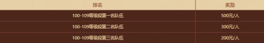 2025年11月28日-12月29日期间,玩家参与“109”新服试道大会,除游戏内奖励外可额外获得“王者争锋”活动奖励。在活动期间新服共有12月4日、12月11日、12月18日、12月25日四次试道大会,每次试道大会的100-109等级段第1~3名队伍成员均可获得现金奖励。