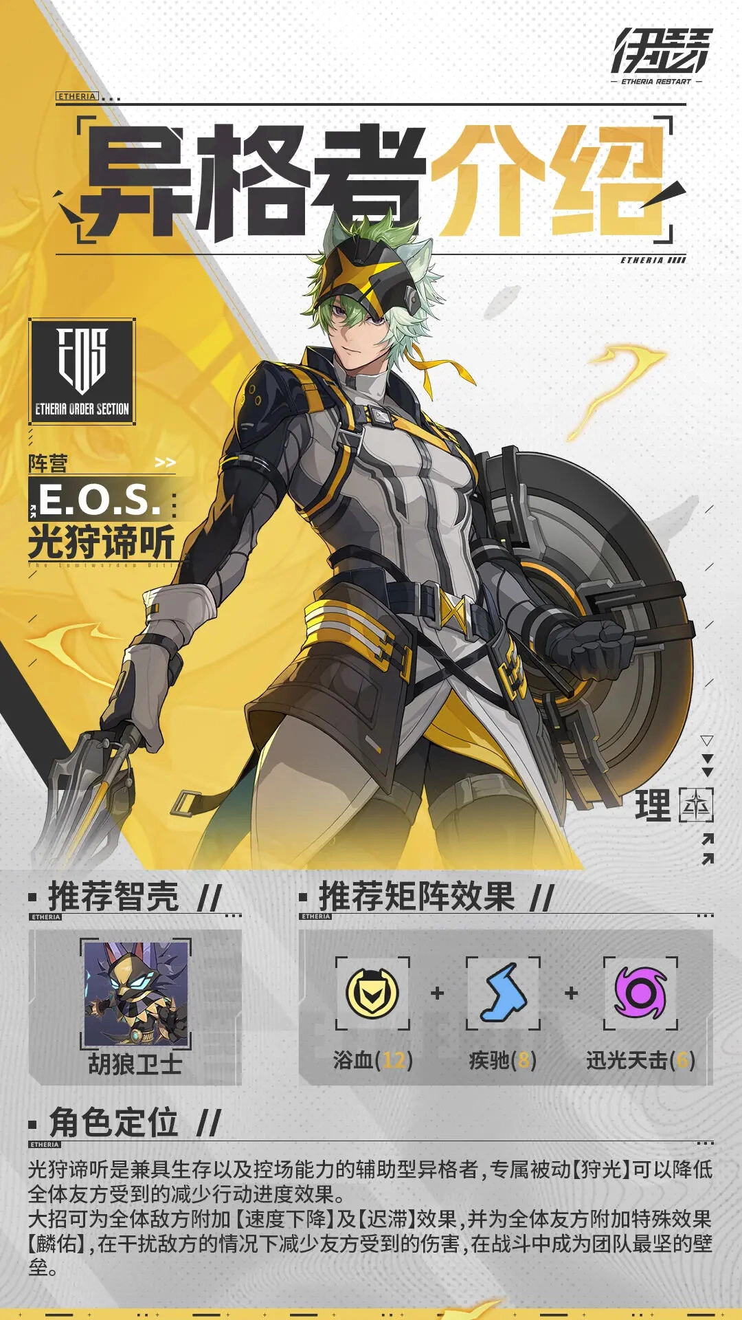 在《伊瑟》里,近期上线了一位辅助型异格者,他同时具备生存与控场能力。其专属被动为“狩光”,能降低全体友方所受的减少行动进度效果。不少玩家都在打听光狩谛听该如何培养。接下来,小编就为大家带来伊瑟光狩谛听培养方法的分享资讯,感兴趣的玩家不妨来瞧瞧。