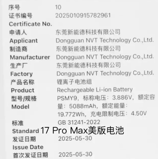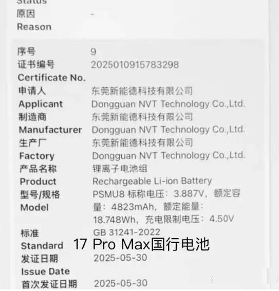 iPhone17系列电池容量情况现已明晰,一大显著特点是美版较国行版更大。从曝光数据来看,iPhone 17 Pro Max美版为5088mAh,国行版则是4823mAh;iPhone 17 Pro美版4252mAh,国行版3988mAh。这种差异或因美版采用eSIM技术,取消实体SIM卡槽,为增大电池容量创造了空间。