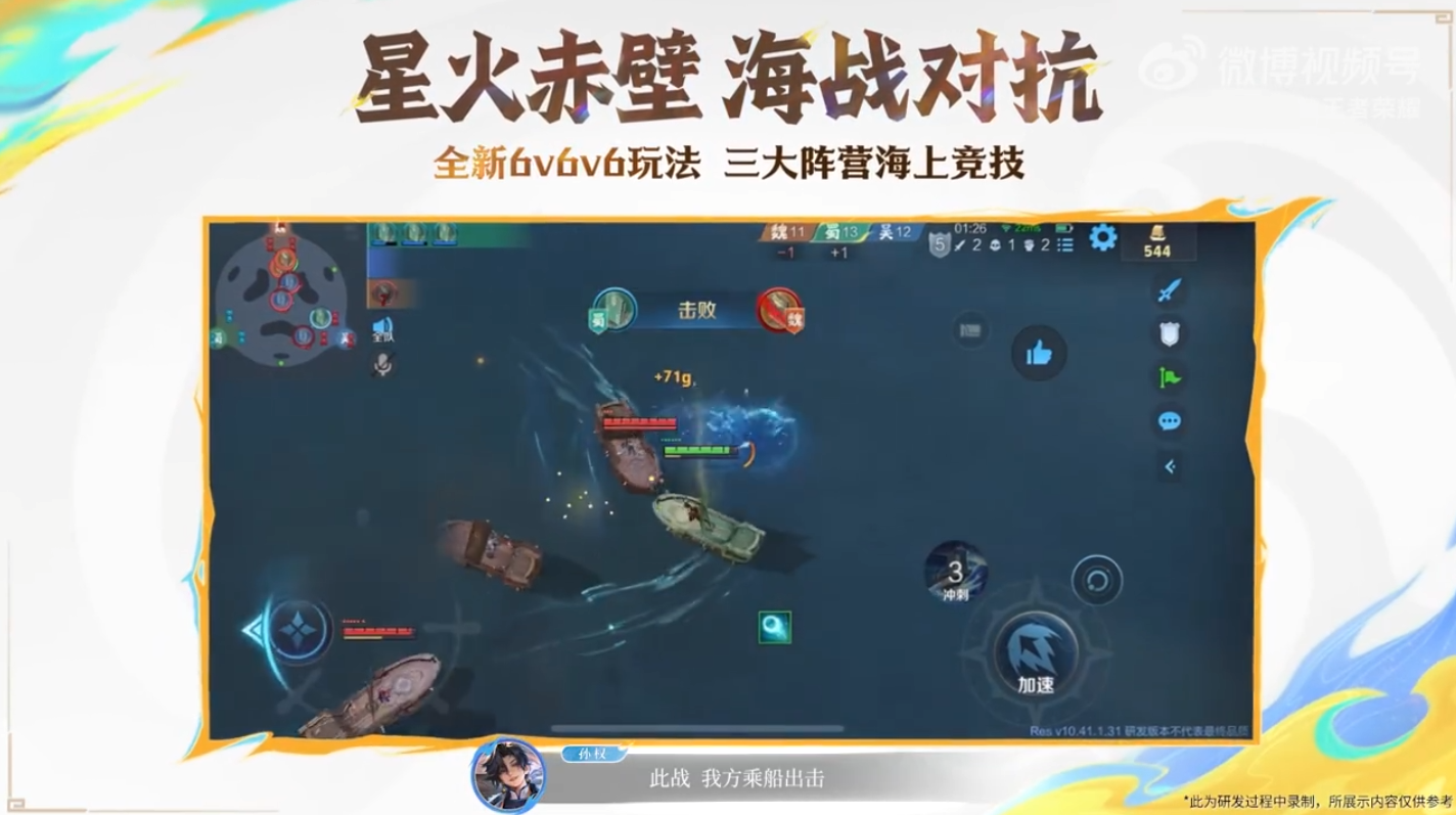 腾讯《王者荣耀》手游官方微博今日宣布,全新6v6v6限时海战玩法「星火赤壁」将于9月11日8点上线。