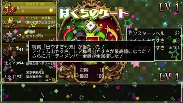 手气好的话,甚至有机会进入击倒敌人就会掉落道具的大放送状态 ! 但若手气不佳,也可能遭遇魔物等级被提高到破千,在寻找出口的地狱中徘徊的窘境 …… !?