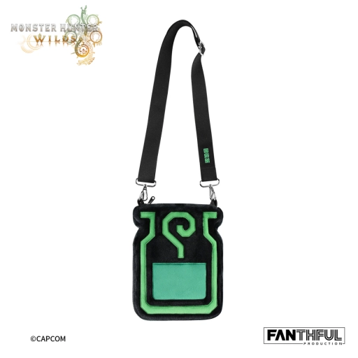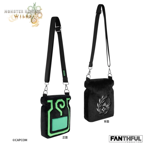 选取了游戏中的重要道具神奇绿色饮料——回复药的图案作为主题,设计开发的【回复药】毛绒包包;背面则是此次《怪物猎人 荒野》的标题图标,背带上也点缀了绿色字样,细节满满!