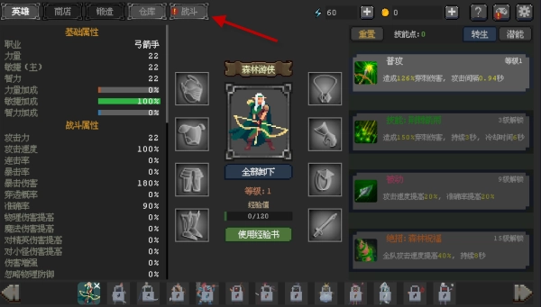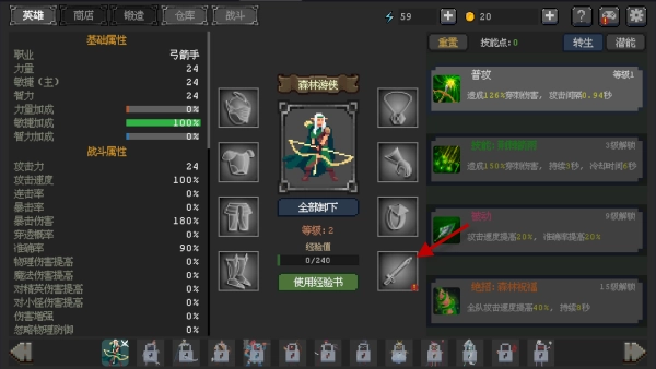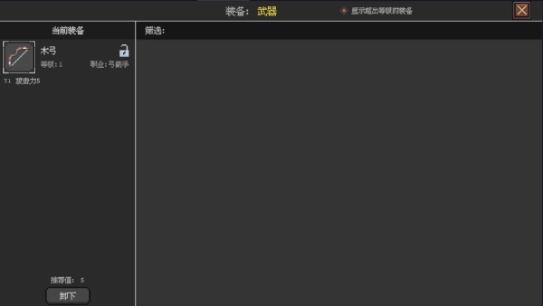 5、获得装备如武器弓,主界面点击装备槽更换。