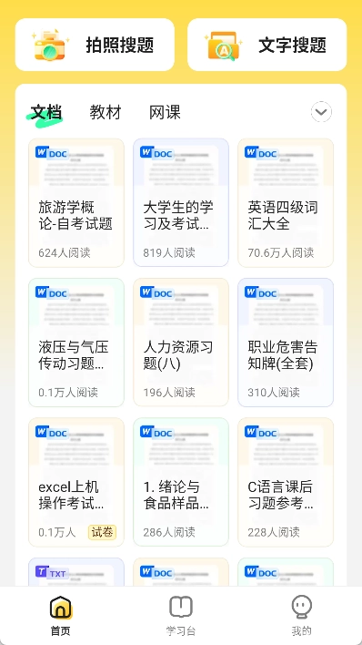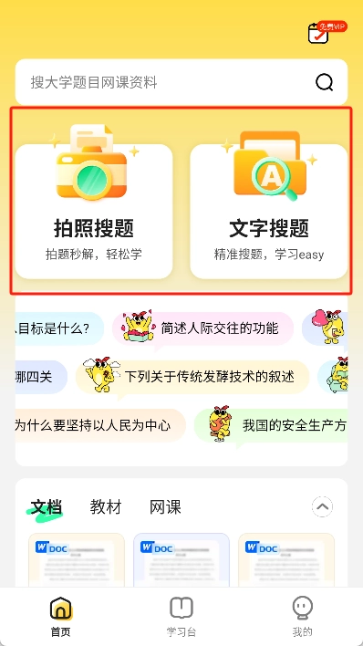 - 资源检索:搜题/文档/课程/教材四维一体