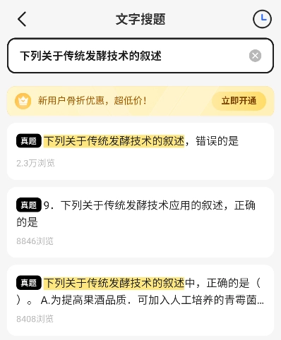 3. 选择文字搜题:输入题目关键词或完整问题