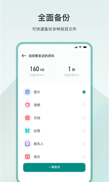 • 全数据类型支持:覆盖联系人、通话记录、相册、音视频、应用等核心内容