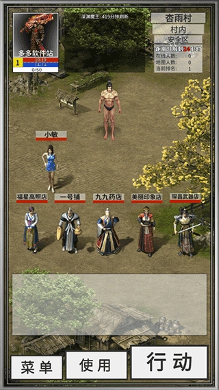 3、进入之后我们来到了新手村,可以看到有几个npc以及多出了菜单选项
