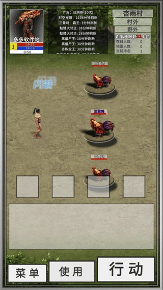 6、这里我们选择去杏雨村野外,就看到开始打怪了,地图上方还会说明各大boos的刷新时间