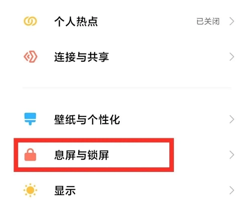 进入手机设置菜单,选择息屏与锁屏选项。