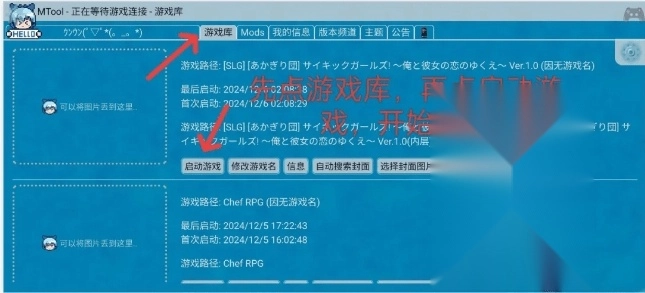 4. 打开游戏库查看已导入游戏,自定义封面后点击启动按钮