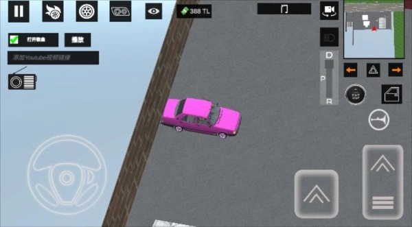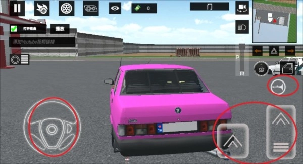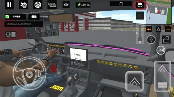 4、操作界面左侧是方向盘,右侧依次为油门、刹车和喇叭按钮。