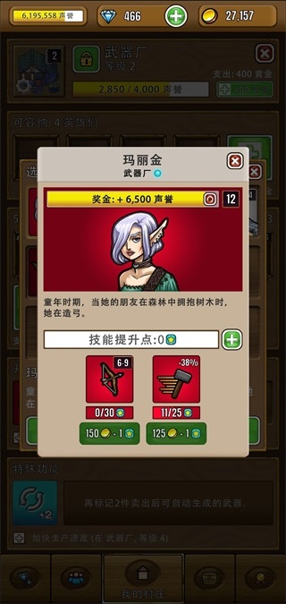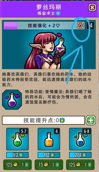 对于拥有两三种物品的队员,建议不要平均升级,而是只提升单个物品。因为随着队伍扩大,很多天赋会重复,每个房子可以容纳三个队员。如果平均分配升级资源,会导致物品等级普遍较低,出售时价格也会偏低。第二种类型的队员既能出售物品也具备特殊天赋,这类队员应专注于提升天赋而非物品等级,这样可以更好地辅助其他队员。还有一种队员是不卖物品、完全依靠天赋的,这类队员有三种类型:售价奖励、生产速度加快和购买行动加速。我个人推荐优先提升生产速度,如果没有这个选项,可以选择提升售价奖励。购买行动加速其实可以通过增加容纳英雄的空间来实现。当你的队伍规模扩大后,不要一看到技能点就去升级,这样会消耗大量金币。应该主要提升那些你正在使用的队员。队员的品质也很重要,如果你抽到了自带特殊功能的队员,就可以替换掉普通的队员。需要注意的是,在更换队员时,如果该队员正在制造某个物品且尚未完成,此时更换队员会导致之前投入的资源浪费。队员的技能点是可以重置的,具体操作请参考下图。