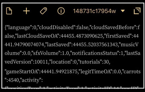 但是游戏设置里为我们提供了一个无比简单的手段:「复制存档资料到剪贴板」,然后在你的系统备忘录(或者随便什么你喜欢用的文本编辑器)粘贴一下,就可以看到这样几万到十几万个不等的字符。