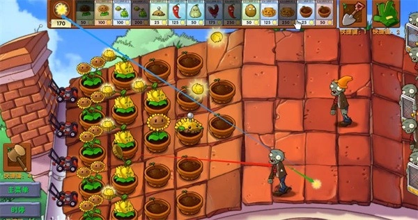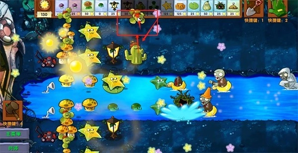 资源运营 优先部署双子阳光向日葵,开局30秒内完成6株种植。迷雾关卡预留150阳光随时补路灯花
