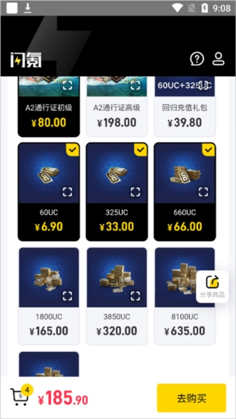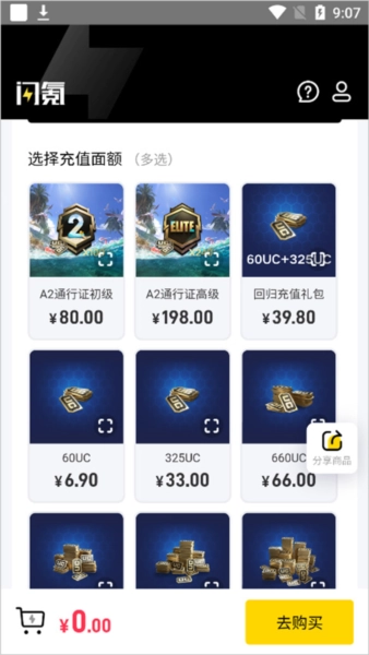 3.下滑页面挑选充值金额,支持多选组合。