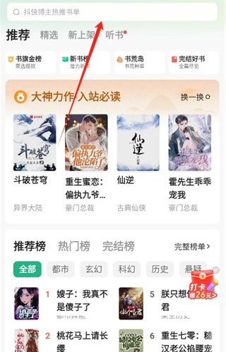 1. 安装应用后打开主界面,在搜索框输入目标小说名称。