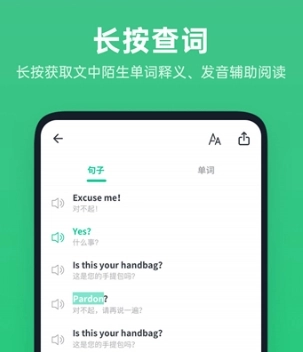 2. 中英译文同步:有声对照翻译,辅助理解句子和文章含义。