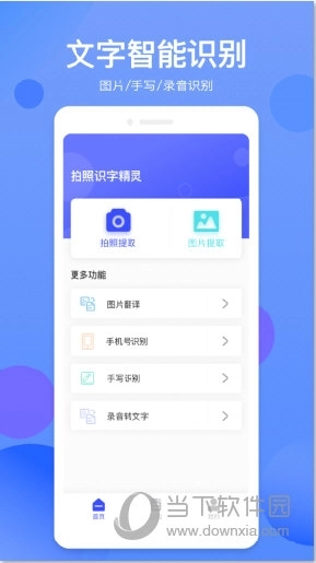 2、浏览首页:查看所有可用功能和最近识别的文件列表。