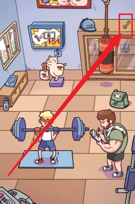 3、钥匙开柜,砝码放入举重杠杆完成挑战。