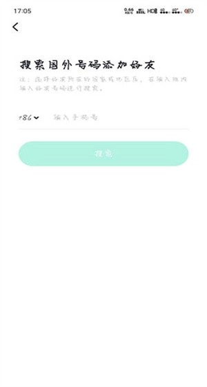 6、国际号码添加:输入号码并选择国家地区后搜索