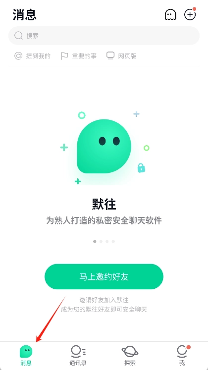 2、进入消息页面:底部导航栏点击"消息"选项